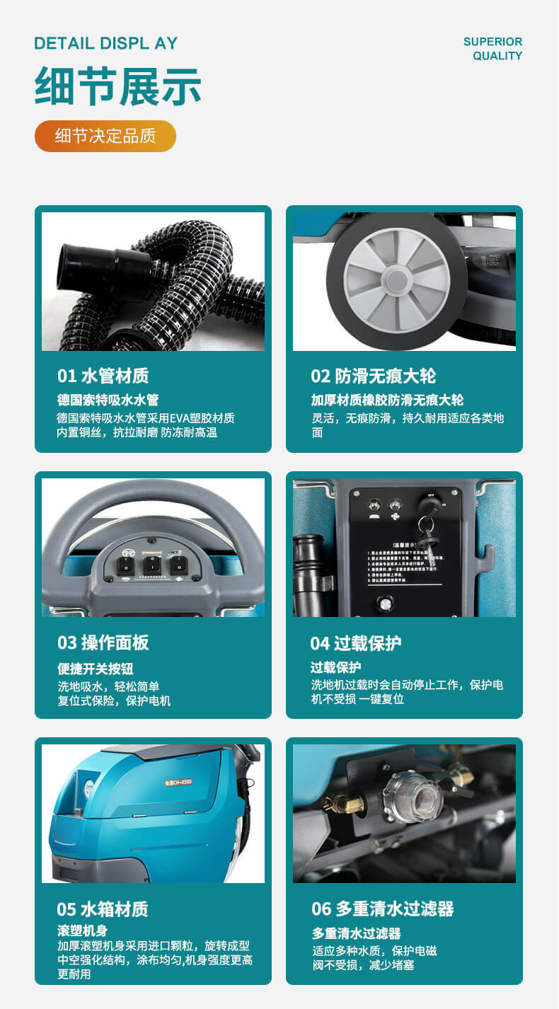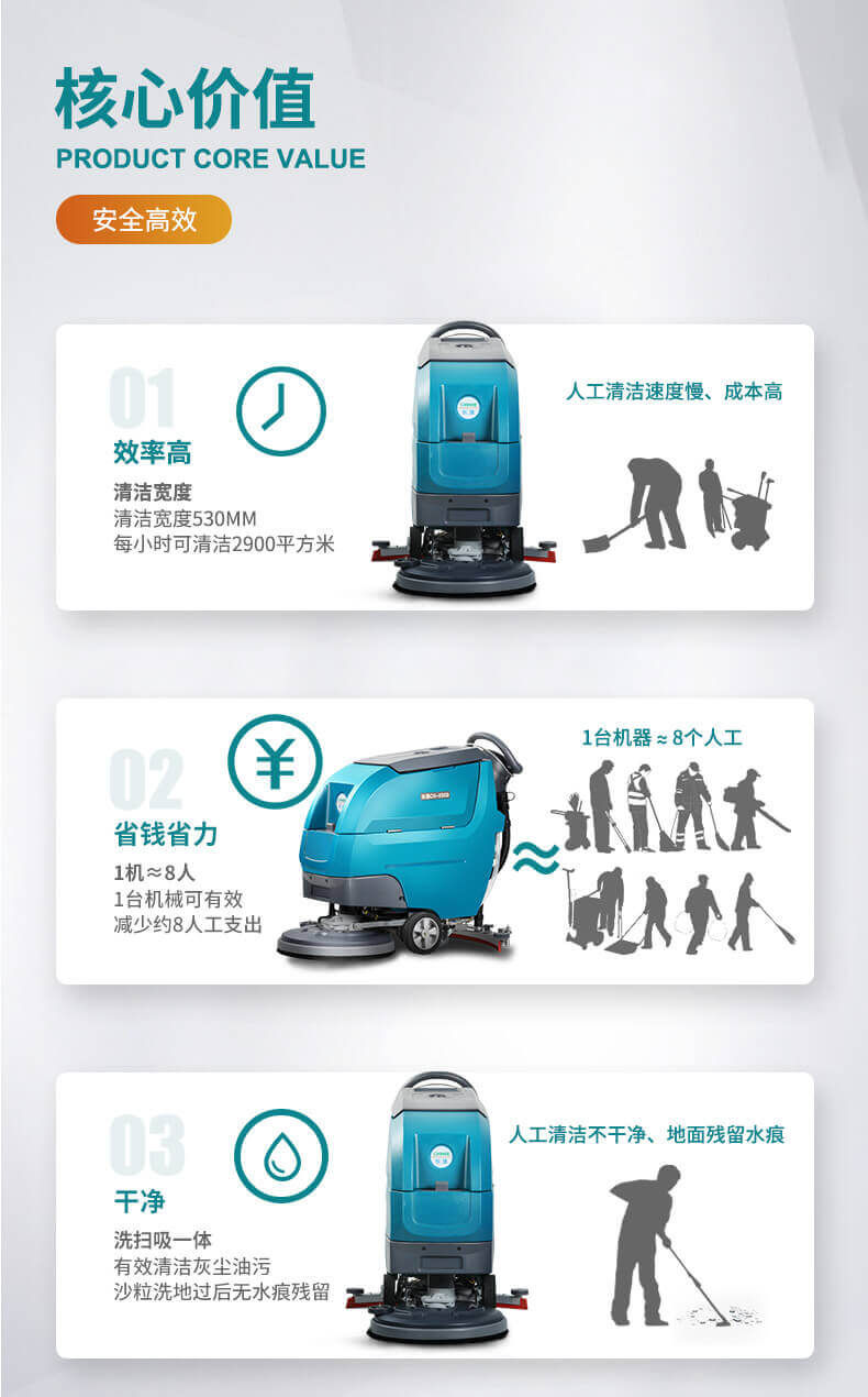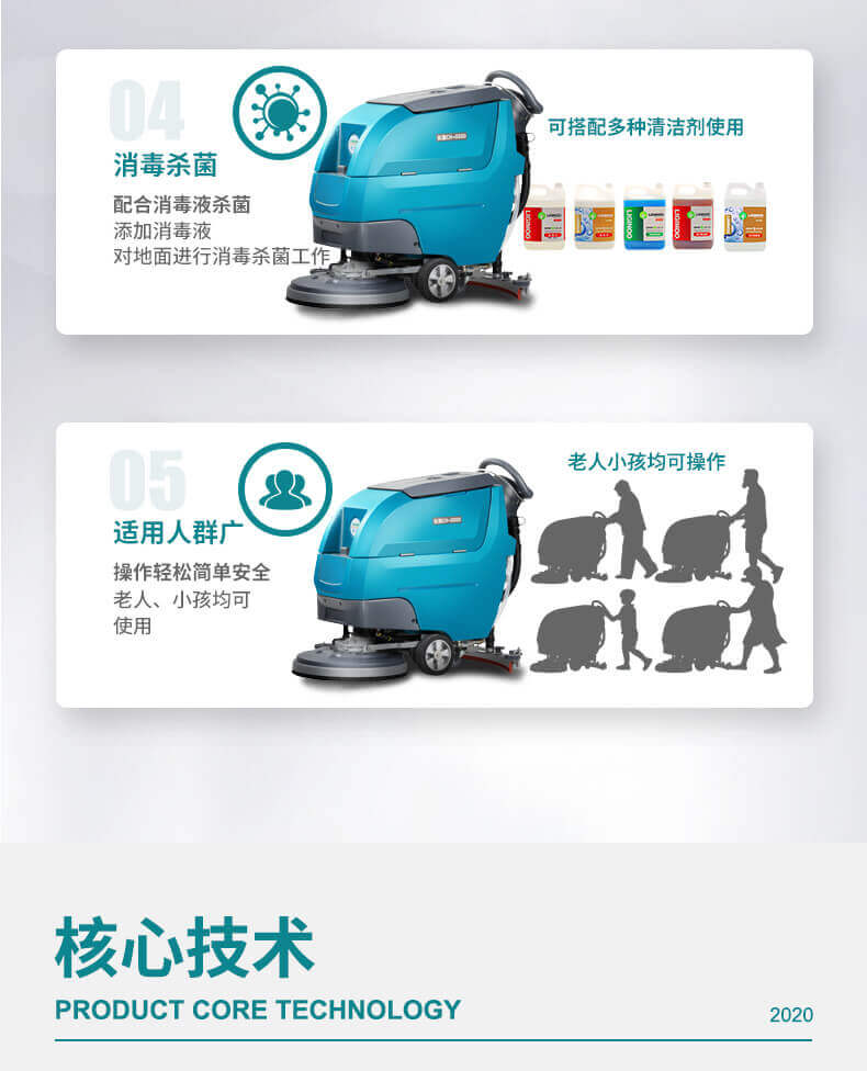 用途:自驅(qū)式洗地機(jī),無需用力自動行走,省時省力低噪音,適用于醫(yī)院、學(xué)校、商超、超市、工廠等場所的硬地面清潔,機(jī)器有水質(zhì)三重過濾系統(tǒng),可以避免堵塞。洗擦、吸干一次性完成。