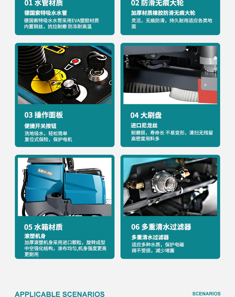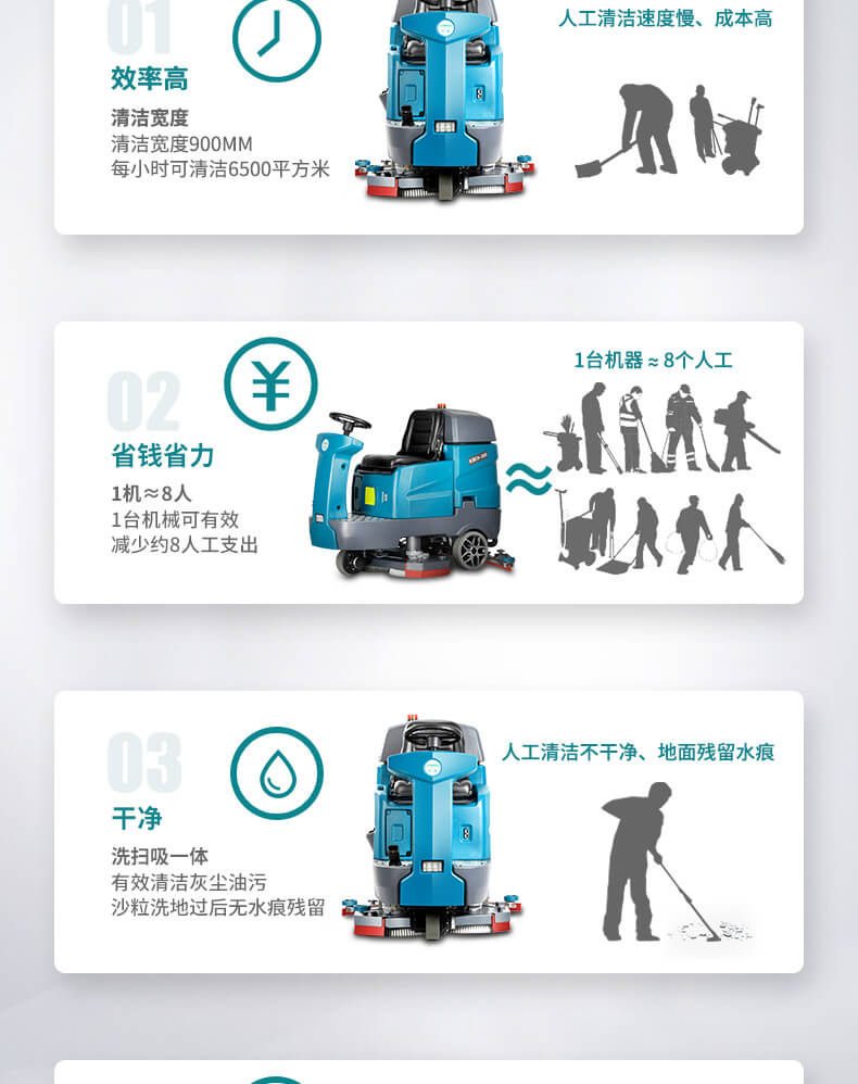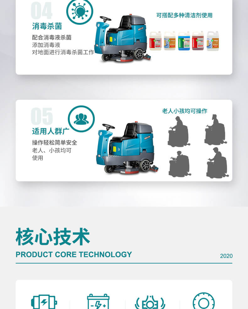 用途:大型雙刷駕駛式洗地機,專為大面積場所的適配機型。每小時可清洗6500平方米,洗擦、吸干一次完成。按鍵式操作,簡單易上手。